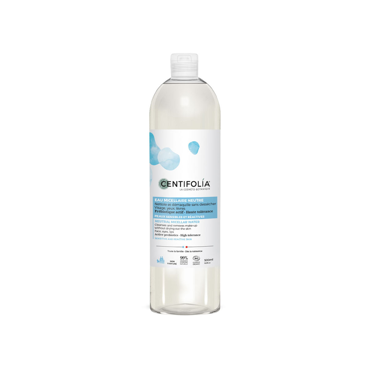 Neutralna micelarna voda čisti i uklanja šminku bez isušivanja kože. Sa svojim kompleksom na bazi aktivnih prebiotika, ova micelarna voda nežno čisti i neguje osetljivu i reaktivnu kožu cele porodice. Uklanja nečistoće, dugotrajnu šminku kako bi koža ostala čista i sveža. Bez mirisa. Pogodna za svakodnevnu upotrebu kod beba (od rođenja), dece, odraslih i trudnica. Dermatološki testirano.